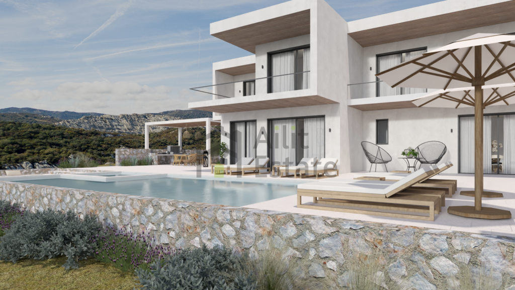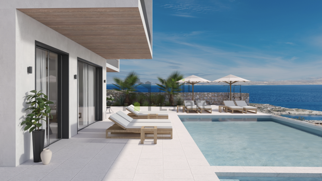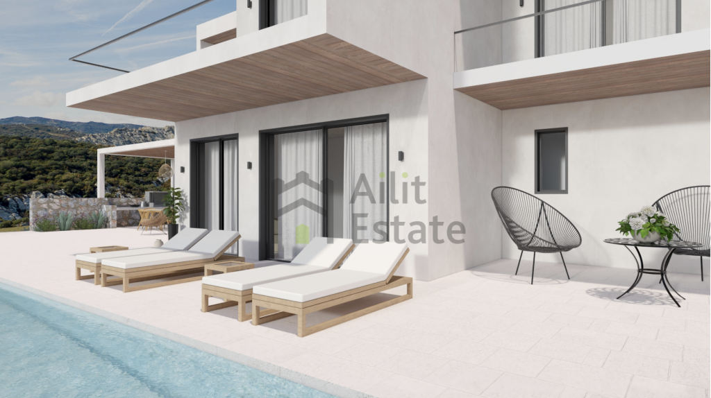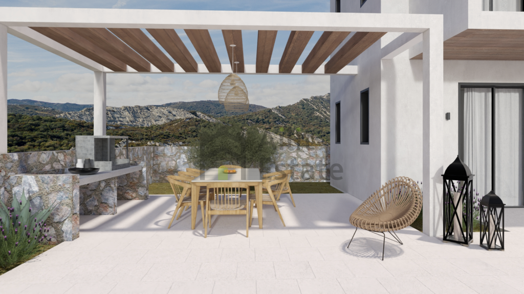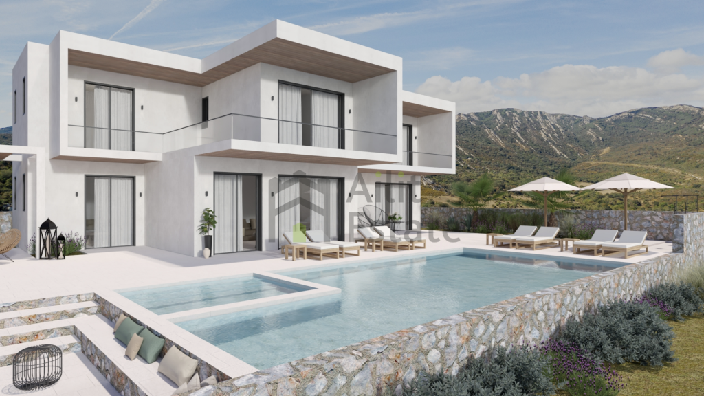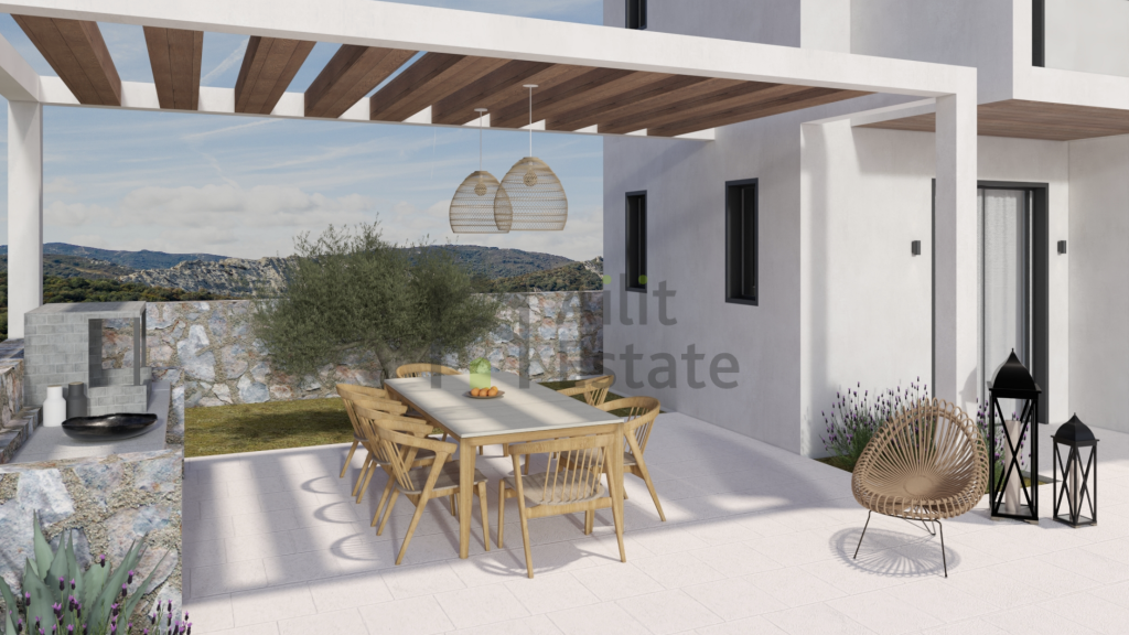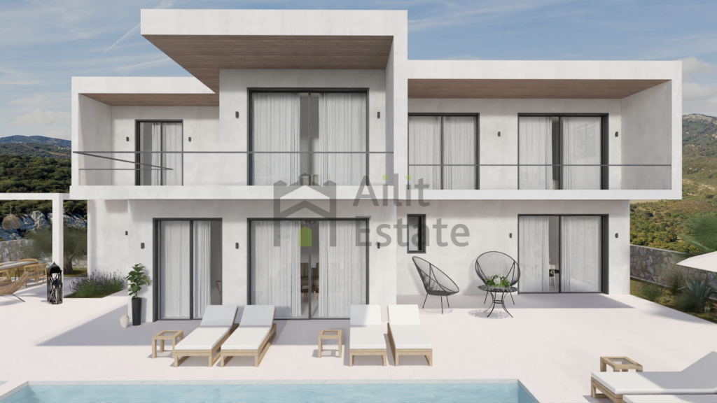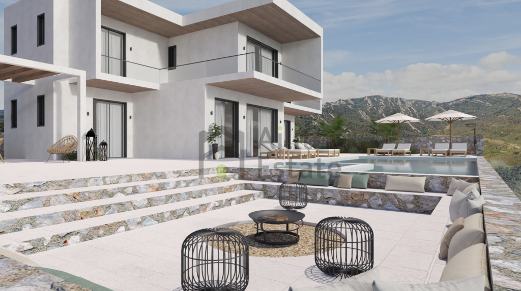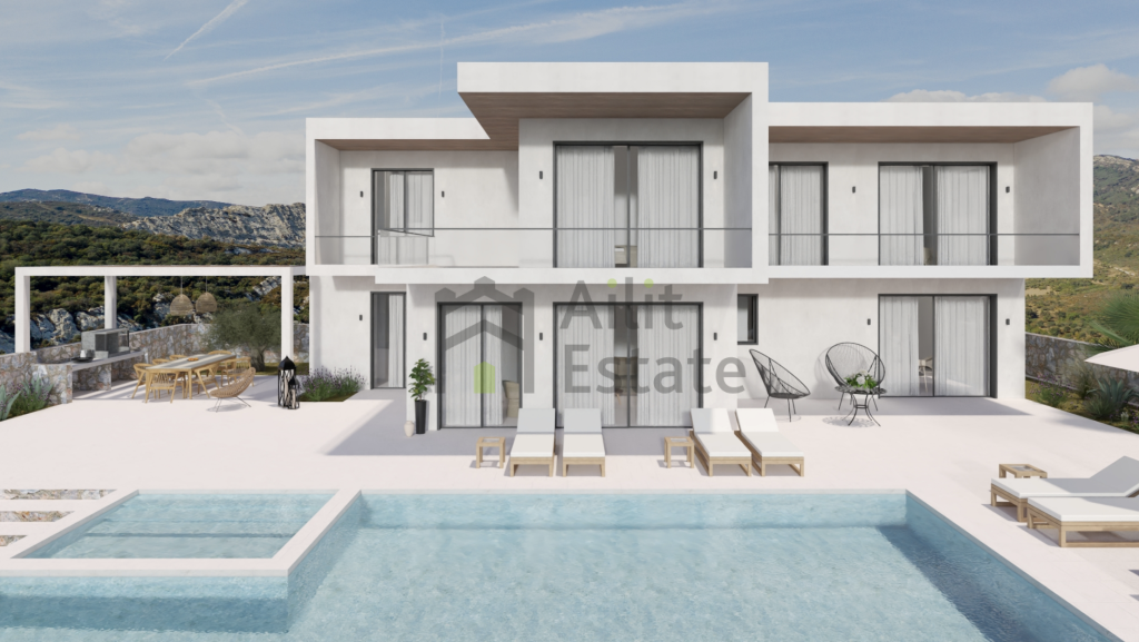 The villa spans a total internal net area of 186 m², with five bedrooms and five bathrooms, all thoughtfully laid out to provide privacy and comfort for residents and guests alike. Including balconies and covered areas, the total internal footprint expands to 222 m². The house sits on a generous plot of 4,106 m², allowing for open views and outdoor living space without compromise.