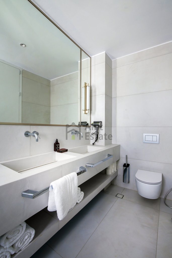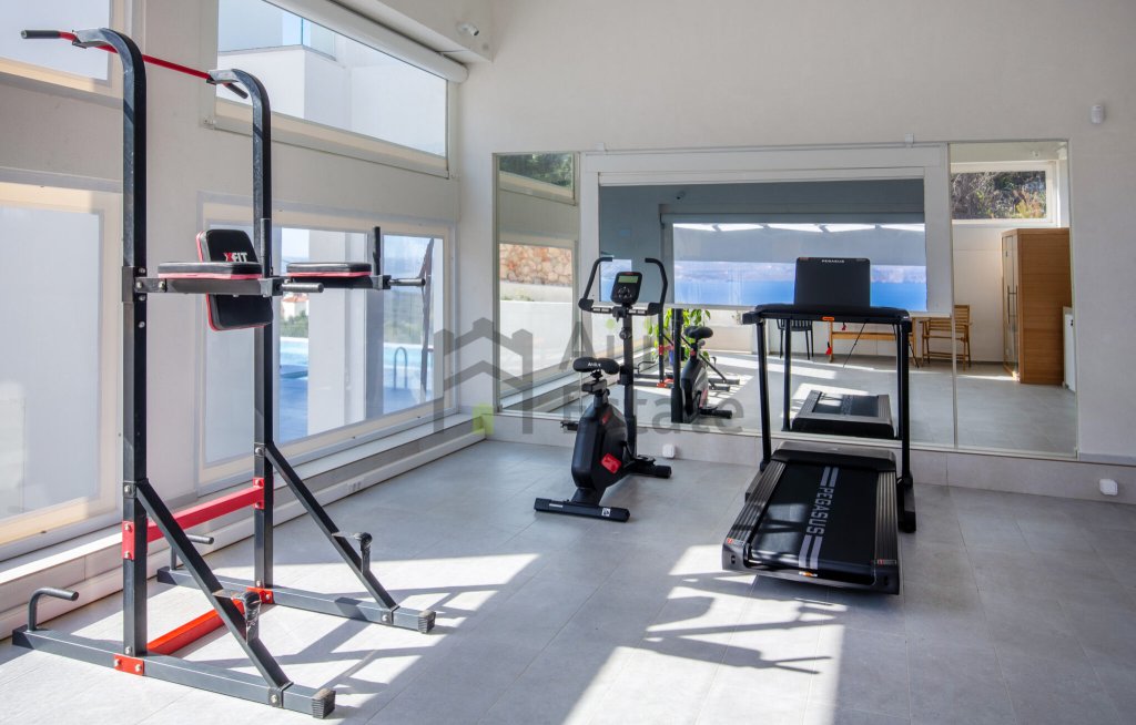 The smart home system controls lighting, climate and security as well as central air conditioning and ventilation. The gym is equipped with cardio machines with sea view, sauna and cryo-chamber for recovery. The 90 square meter pool utilizes a chlorine-free cleaning system, heating and counter current, and includes a children's pool, Jacuzzi and spa area.